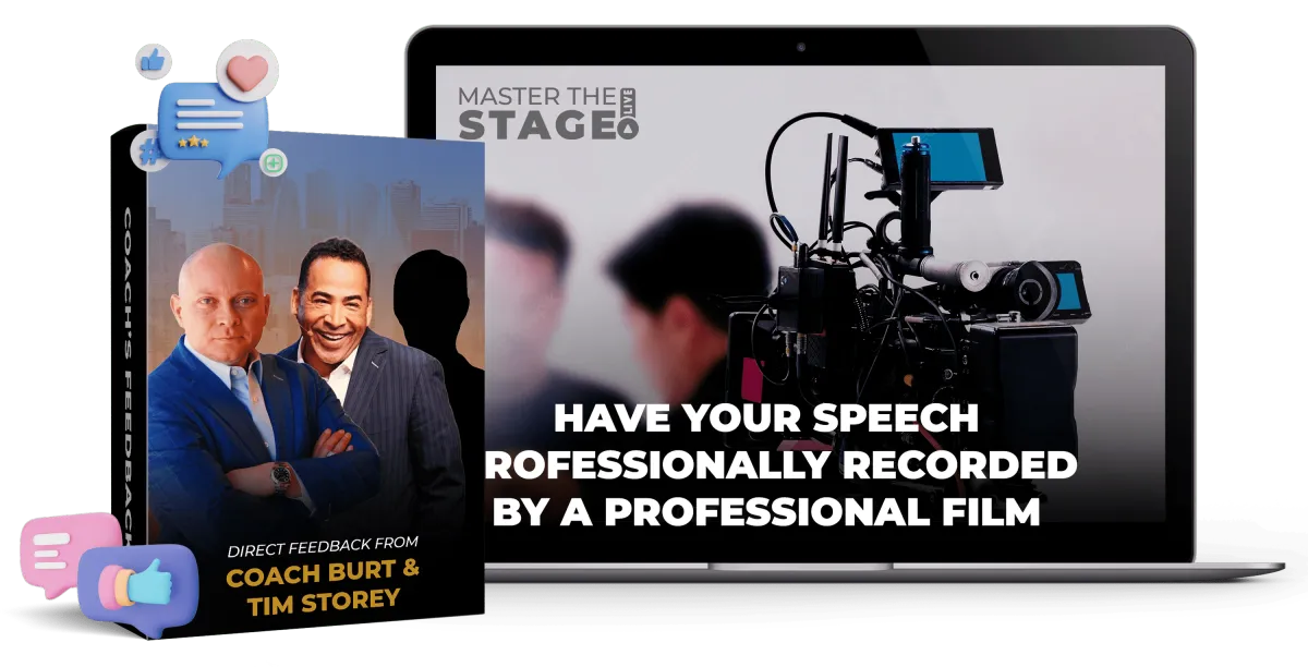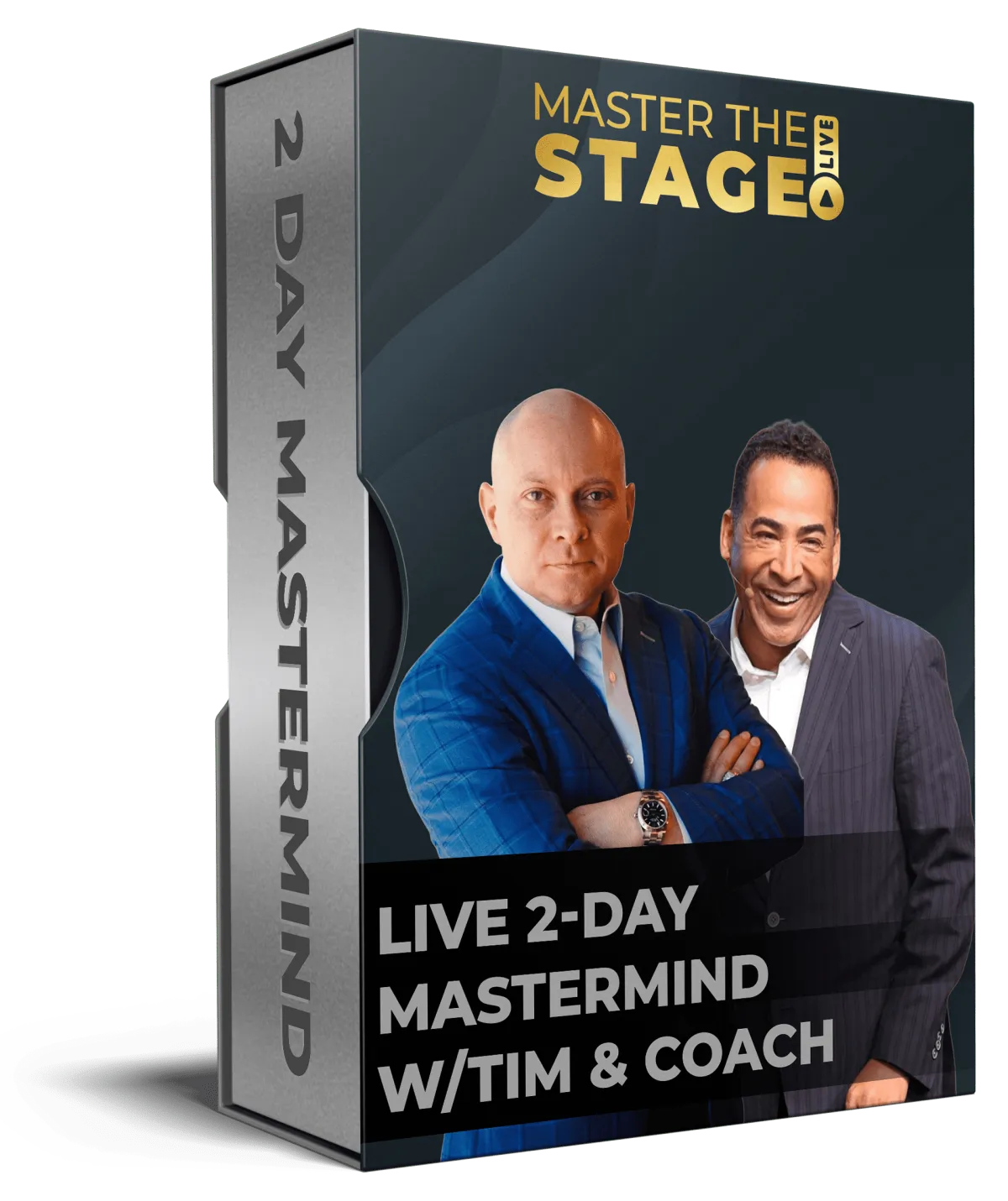 Get "in the room" with Tim and Coach and a small handful of other movers and shakers. This is your chance to see inexplicably powerful ‘Master The Stage’ framework and principles in full action. And get direct mentorship and coaching in an intimate setting from Coach Burt and Tim who collectively have over 100,000 hours on stage, from which they've facilitated over 8 figures in high ticket sales.